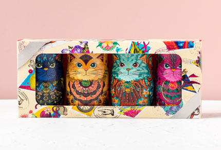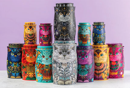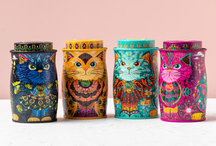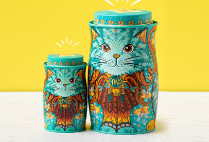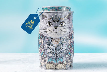 The latest exquisite addition to the Monty Bojangles Cat Tin Family, in a striking purple colour chosen by our fans